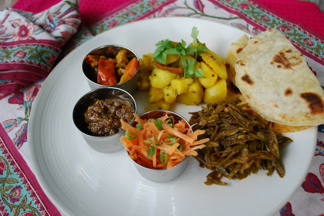 We made a potato curry as well, to complete our mini thali, or assortment of dishes (usually vegetable) served with roti or naan.